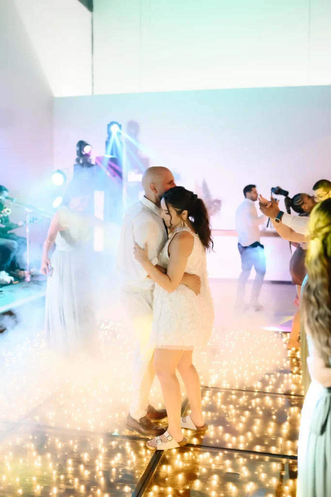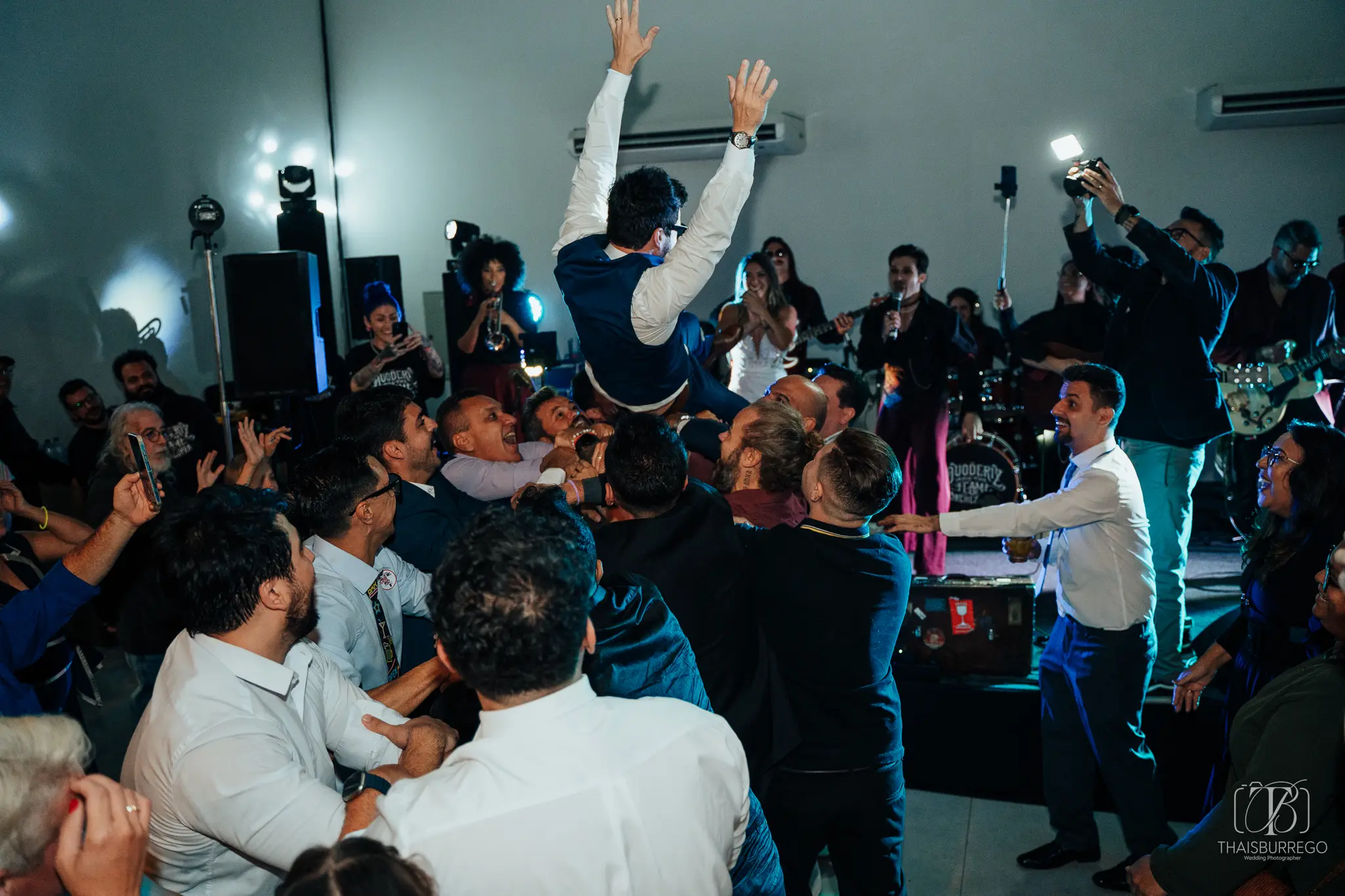 DJ: Nosso pacote já inclui toda a infraestrutura de som, iluminação e projeções de vídeo, além do suporte técnico em todas as etapas do evento, cerimônia, recepção, sonorização do celebrante, som ambiente e festa. Essa estrutura é fundamental para o andamento do evento. Caso os noivos queiram, é possível contratar um DJ adicional para uma apresentação específica durante a festa, mantendo sempre a nossa equipe responsável pela parte técnica e estrutural.