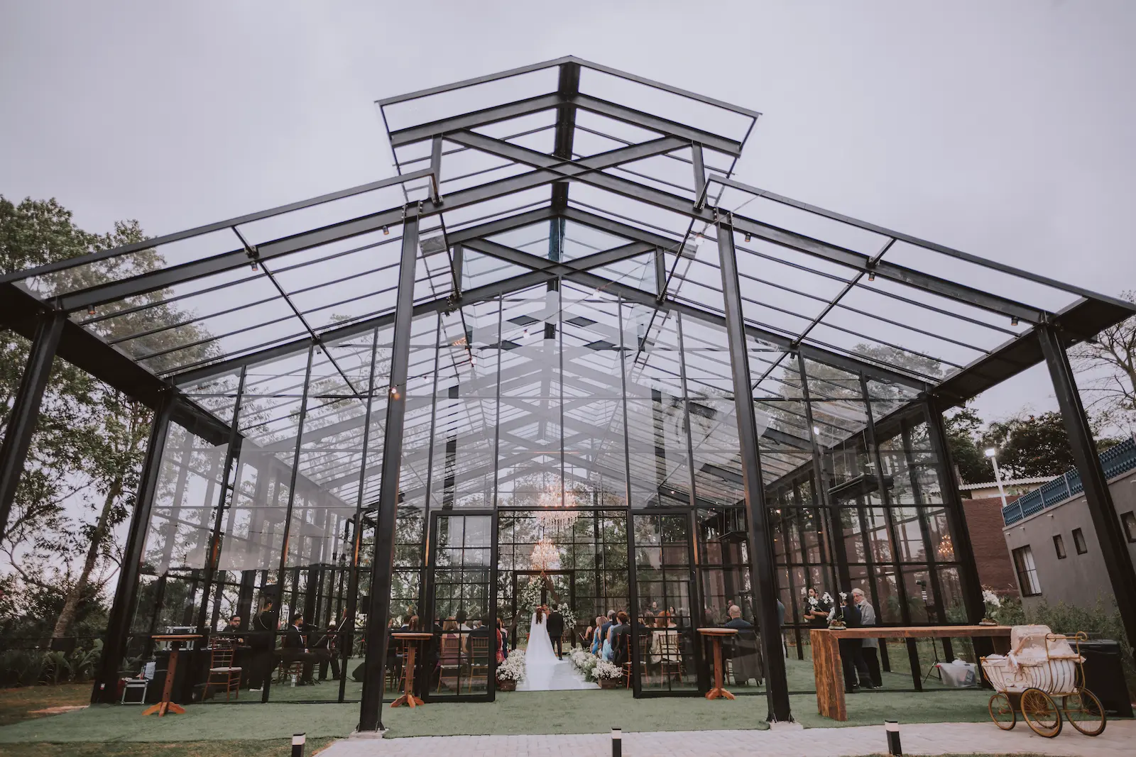 Nosso espaço já conta com uma infraestrutura completa de plano B, preparada para atender confortavelmente o mesmo número de convidados da área externa. Caso haja previsão de chuva, a cerimônia e os lounges são transferidos para ambientes cobertos, sem prejuízo da experiência dos convidados.